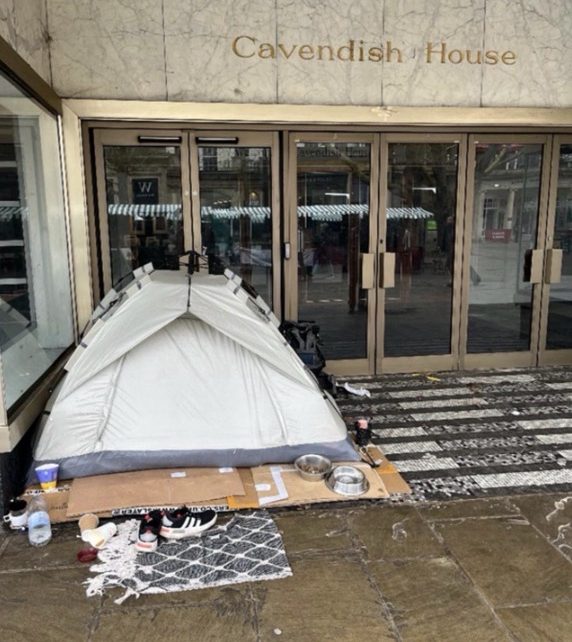 Several unhoused people who had been staying in a sheltered area in the town centre, outside Cavendish House, say they were recently asked to leave the spot where they had been sleeping after a petition from nearby residents and businesses.