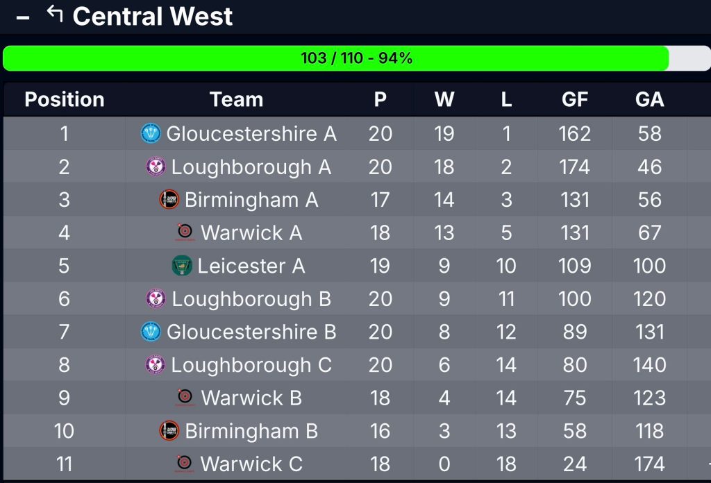Gloucestershire went into their final league matches of the 2025/26 season on Wednesday as they came up against three strong sides from the University of Loughborough, however the UOG A team knew just two wins out of three would be enough to secure the top spot in the league.
